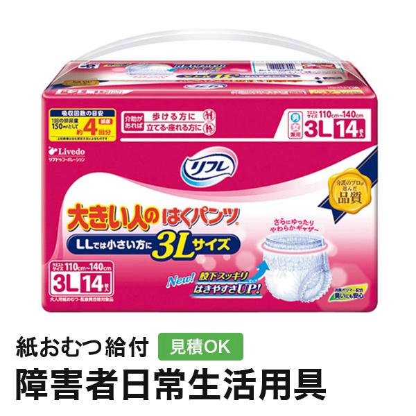 リフレ 大きい人のはくパンツ3Lサイズ14枚入 大人用 紙おむつ 大人用紙おむつ 紙パンツ 大人用オムツ おむつ|kamiomutu-com