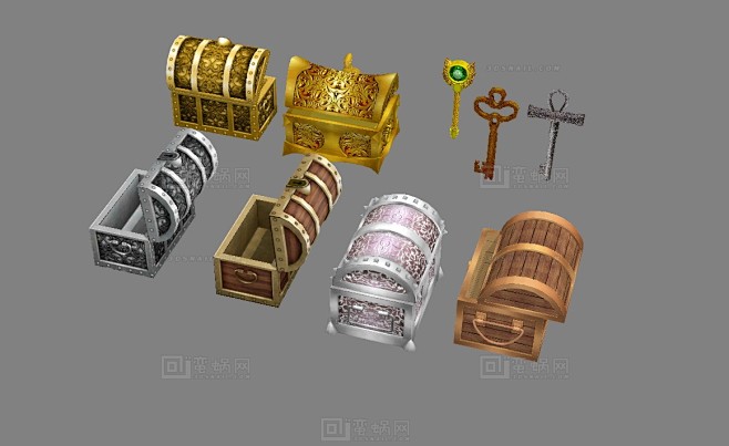 宝箱与钥匙 黄金宝箱 金箱子 银箱子 铁箱子 木箱子 白银宝箱 海盗宝藏 财富 - 综合模型 蛮蜗网