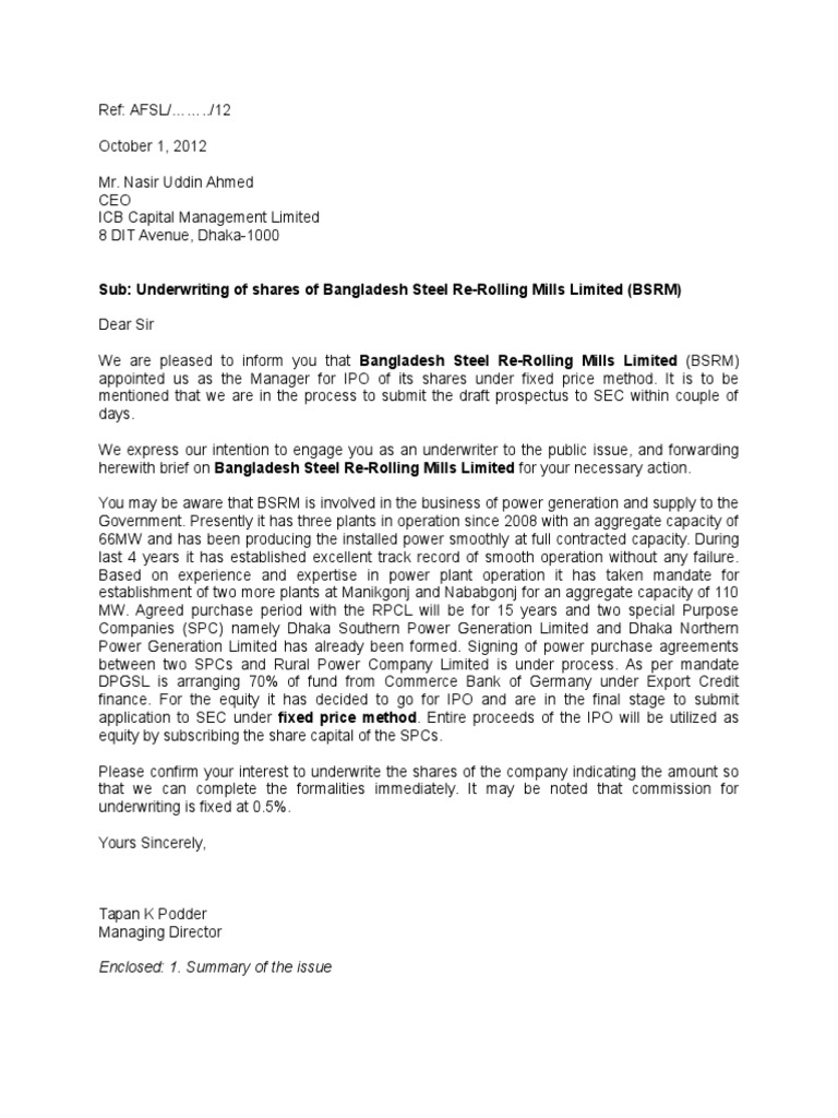 Underwriter Letter of BSRMUnderwriter Letter of BSRM