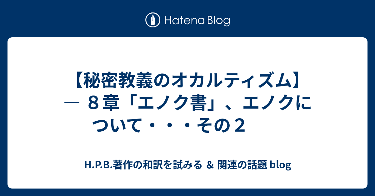 H.P.B.著作の和訳を試みる & 関連の話題 blog 【秘密教義のオカルティズム】 ー 8章「エノク書」、エノクについて・・・その4