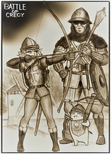 せいりゅー クレシーの戦い 百年戦争下の1346年 イングランド長弓隊は強固な防御陣を敷き フランス封建騎士軍に壊滅的打撃を与えた イングランド軍はその後カレーを占領し 大陸への橋頭堡を獲得した ゆるlarp