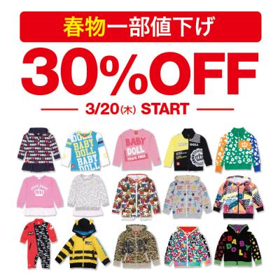 [BABYDOLL 春物一部値下げ]3/20(木)よりスタート!BABYDOLL(ベビードール)・STARVATIONS(スターベイションズ)・通販サイト各店にて春物の対象商品が30%OFF!