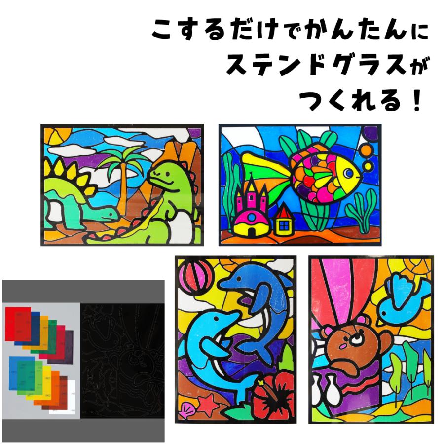 こすって簡単ステンドグラス 各4種類 空 恐竜 イルカ すいそう ステンドグラス かんたん カンタン 工作キット 工作 グラス|handmadecraft
