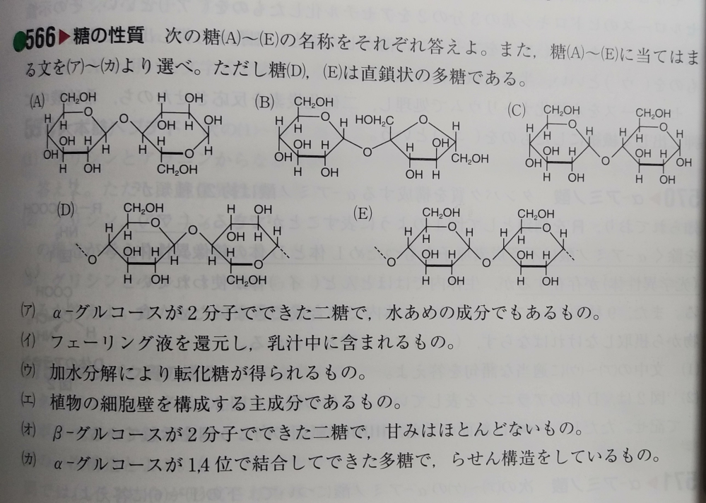 二糖類(マルトース/スクロースなどの還元性・構造式・結合・覚え方など)