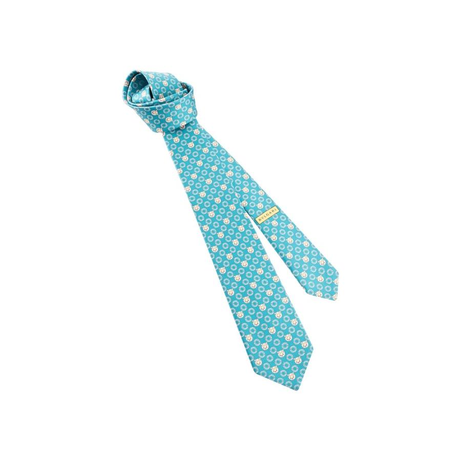 ブルガリ BVLGARI ネクタイ ターコイズ ブルー エモティ キャット プリント セブンフォールド シルク|rarelist