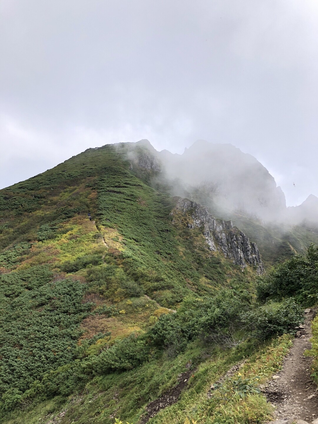 【ニセイカウシュッペ山|日本三百名山】10月中旬、初冠雪の山頂と大槍、小槍、アンギラス
