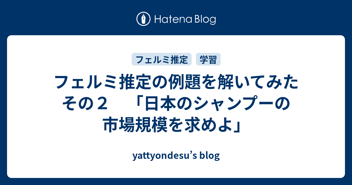 yattyondesu’s blog フェルミ推定の例題を解いてみた その2 「日本のシャンプーの市場規模を求めよ」