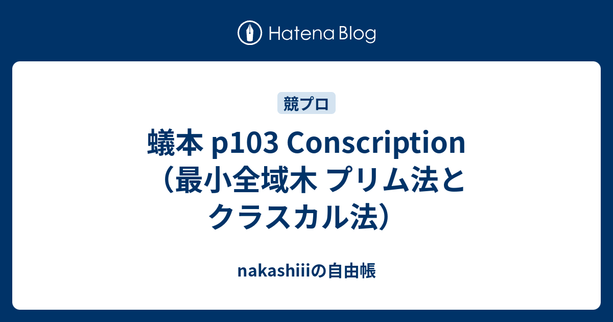 nakashiiiの自由帳 蟻本 p103 Conscription(最小全域木 プリム法とクラスカル法)