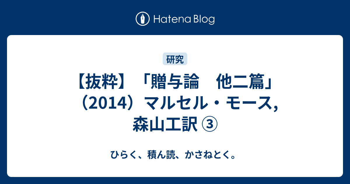 ひらく、積ん読、かさねとく。 【抜粋】「贈与論 他二篇」(2014)マルセル・モース,森山工訳 ③
