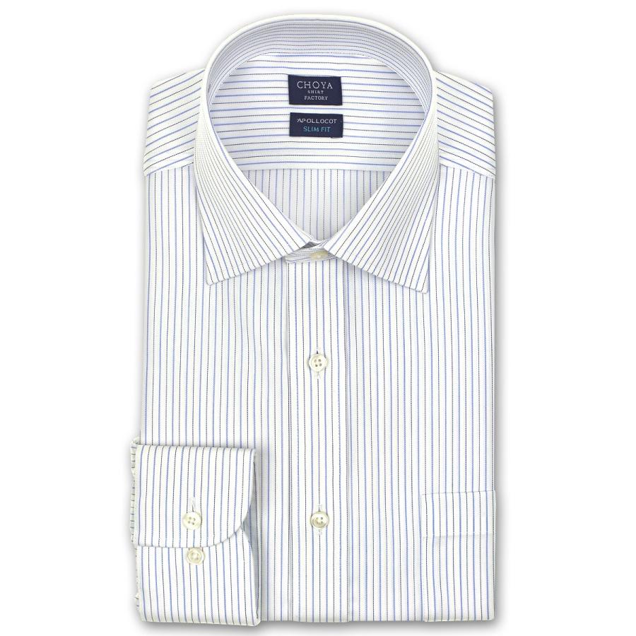 ワイシャツ Yシャツ メンズ 長袖 | CHOYA SHIRT FACTORY スリムフィット | ブルーピンストライプ ワイドカラーシャツ|choyashirts