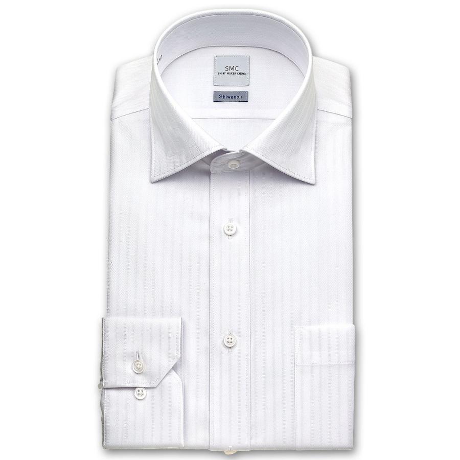 ワイシャツ Yシャツ メンズ 長袖 SMC Shiwanon 形態安定加工 ホワイト 白ドビーストライプ ワイドカラーシャツ おしゃれ 就活 冠婚葬祭|choyashirts