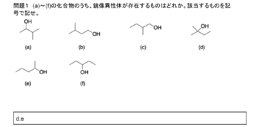 有機化学の不斉炭素原子の見つけ方がよくわかりません。この問題を例に教えてもらえるとありがたいです。