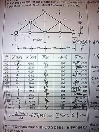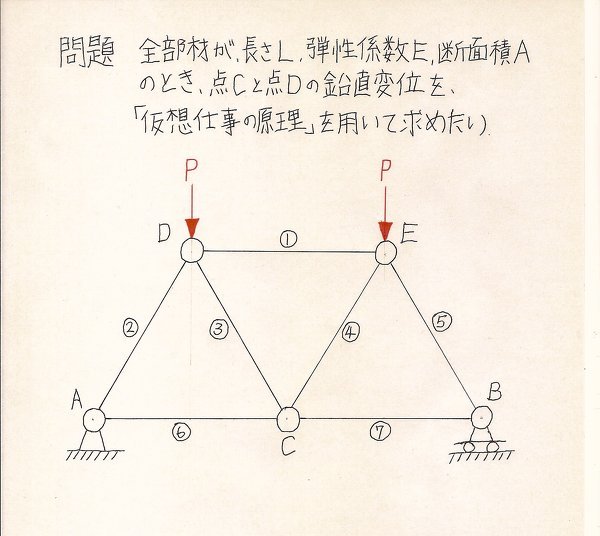 Yahoo!知恵袋構造力学の問題についての質問です。仮想仕事の原理を用いたトラス変位に関する問題がわかりません。