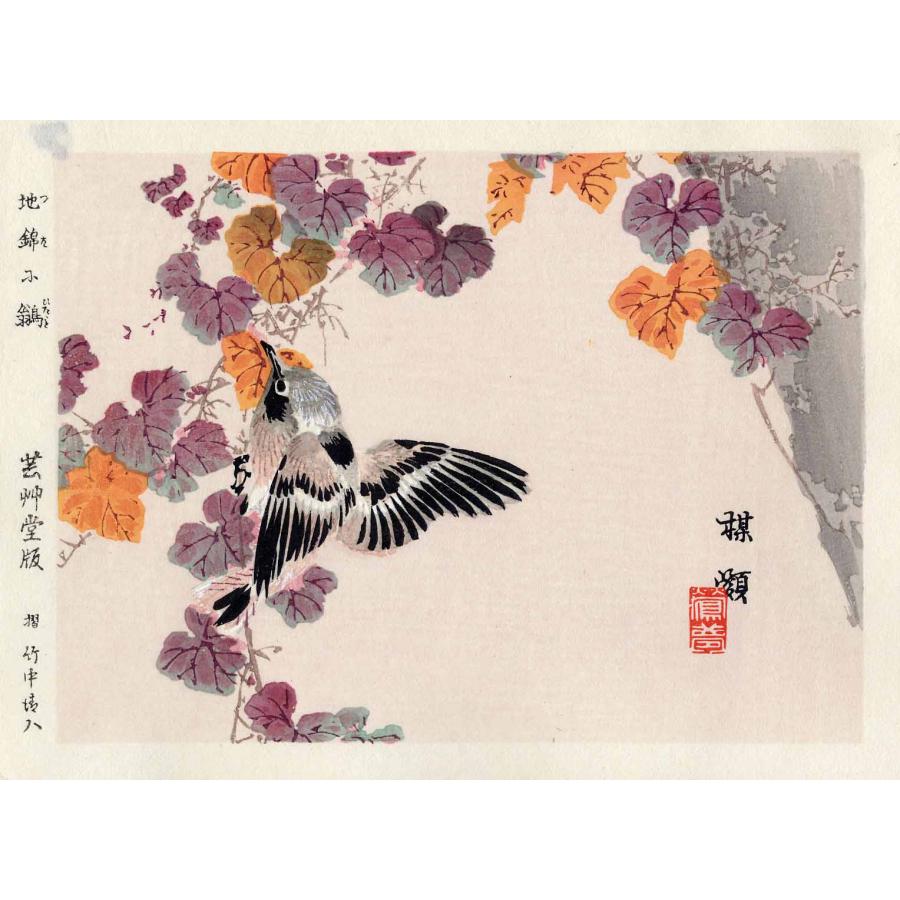 幸野楳嶺 木版画 ひたき Bairei Kono Woodcut Flycatcher |