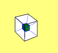 正八面体ABCDEFの各面の重心を頂点とし、 隣合う面どうしの頂点を結ぶことによって、 正八面体の中