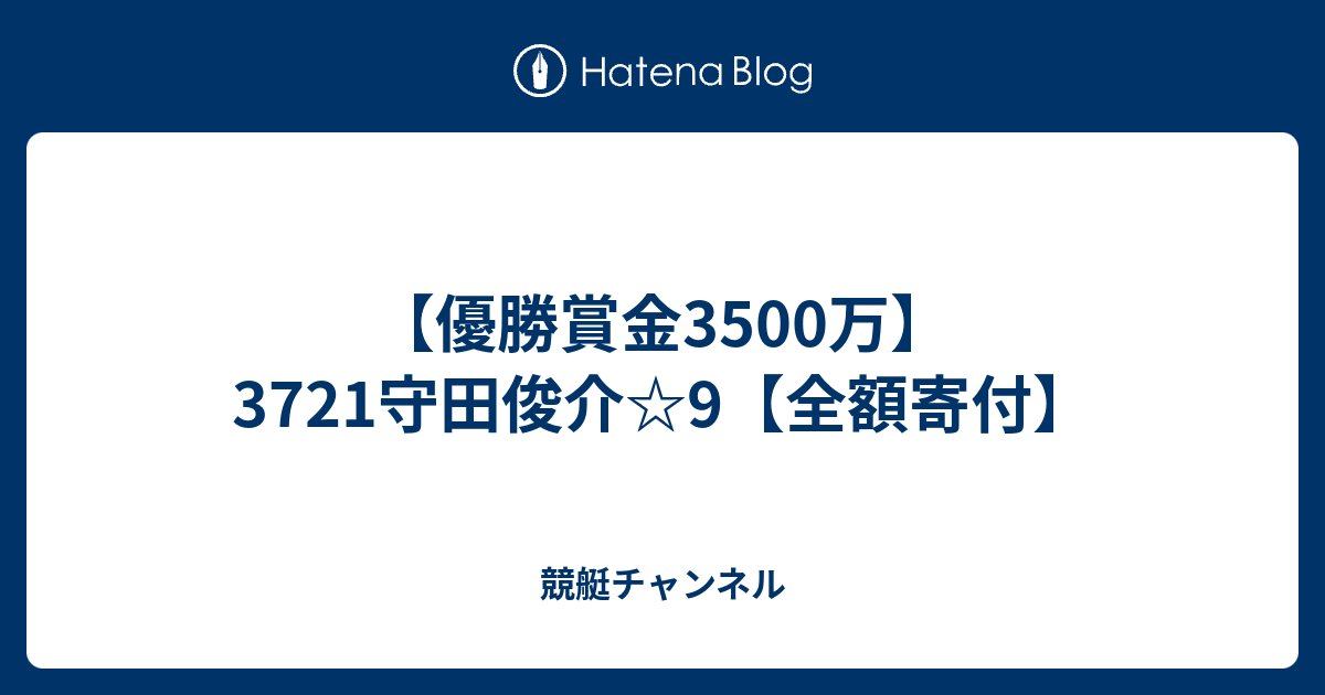 競艇チャンネル 【優勝賞金3500万】3721守田俊介☆9【全額寄付】