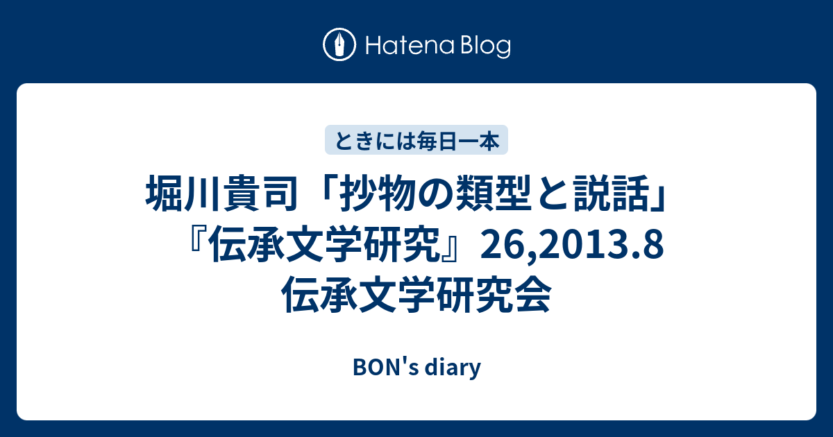 BON's diary 堀川貴司「抄物の類型と説話」『伝承文学研究』26,2013.8 伝承文学研究会