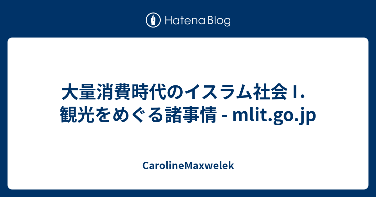 CarolineMaxwelek 大量消費時代のイスラム社会 I.観光をめぐる諸事情 - mlit.go.jp