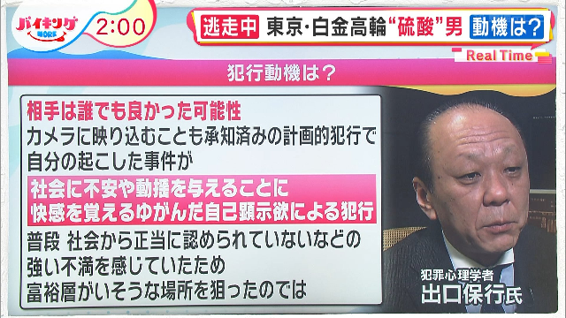 硫酸男が事件1か月前、「ため口でバカにした」と被害者を脅す 計画的犯行で怨恨か