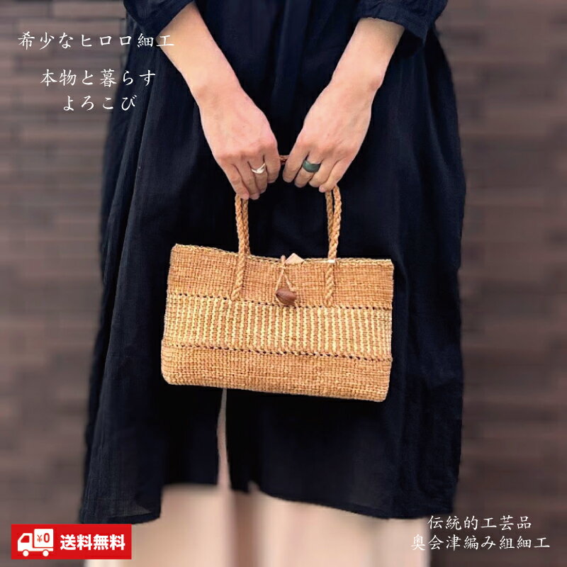福島県奥会津編み組細工 ヒロロ細工かごバッグ 純国産 女性用 内布付き 編み組細工1点もの W25cm ヒロロ 手編みバッグ【送料無料】