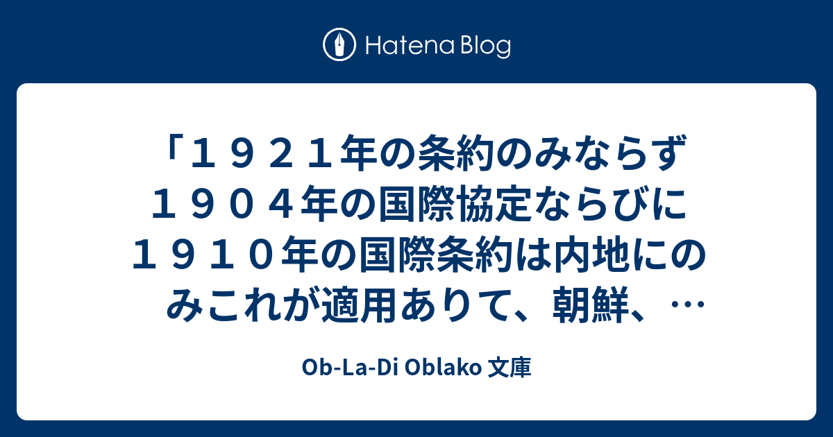 Ob-La-Di Oblako 文庫 「1921年の条約のみならず1904年の国際協定ならびに1910年の国際条約は内地にのみこれが適用ありて、朝鮮、樺太、台湾等の殖民地ならびに南洋委任統治地域および関東租借地にはこれが適用なきものとす。」 国際連盟婦人児童売買調査委員の日本に関する報告書に対する帝国政府意見書 冒頭 1932