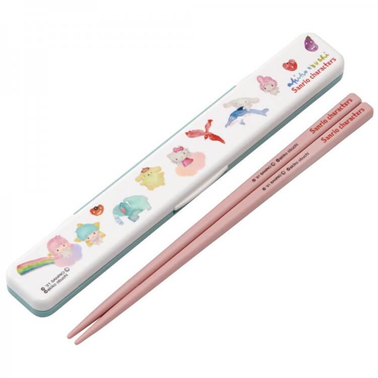箸箱セット サンリオ 抗菌音の鳴らない箸箱セット サンリオミックス×小渕暁子/ABC3AG お箸セット お弁当用箸 携帯用箸 はし ハシ スリム 音が鳴らない|enteron-kagu-shop