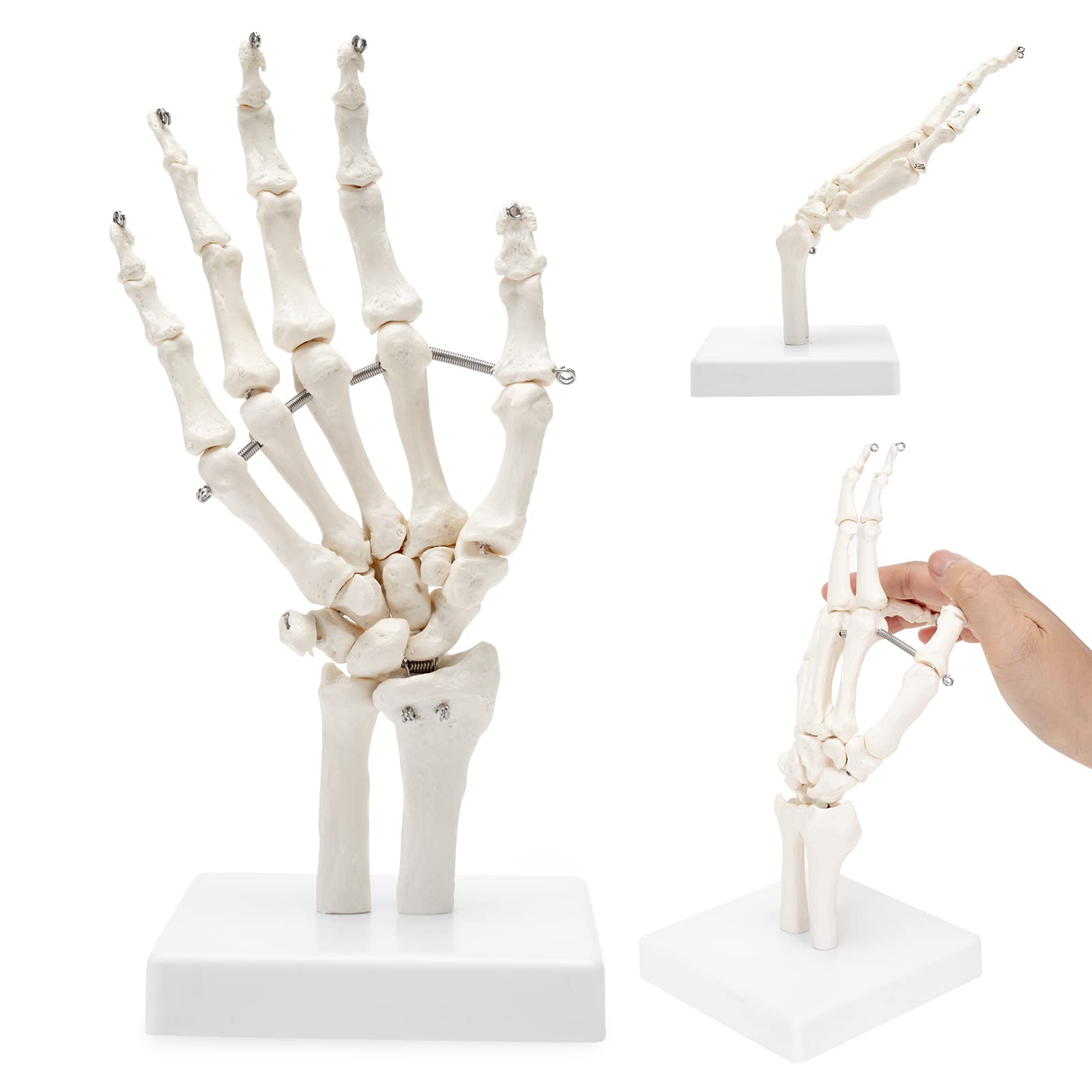 手の関節モデル、人間の手の解剖学的モデル、尺骨と橈骨を示す、ワイヤーで完全に関節式、手の動きの自然な状態をシミュレート