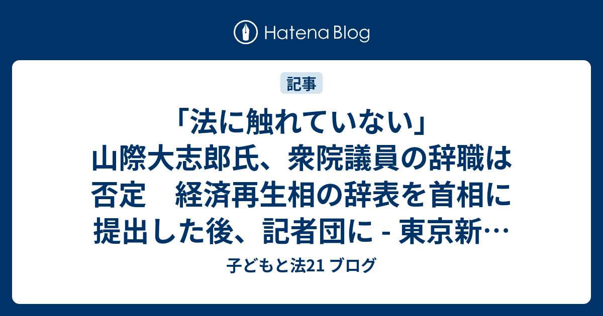 子どもと法21 ブログ 「法に触れていない」山際大志郎氏、衆院議員の辞職は否定 経済再生相の辞表を首相に提出した後、記者団に - 東京新聞(2022年10月24日) view page