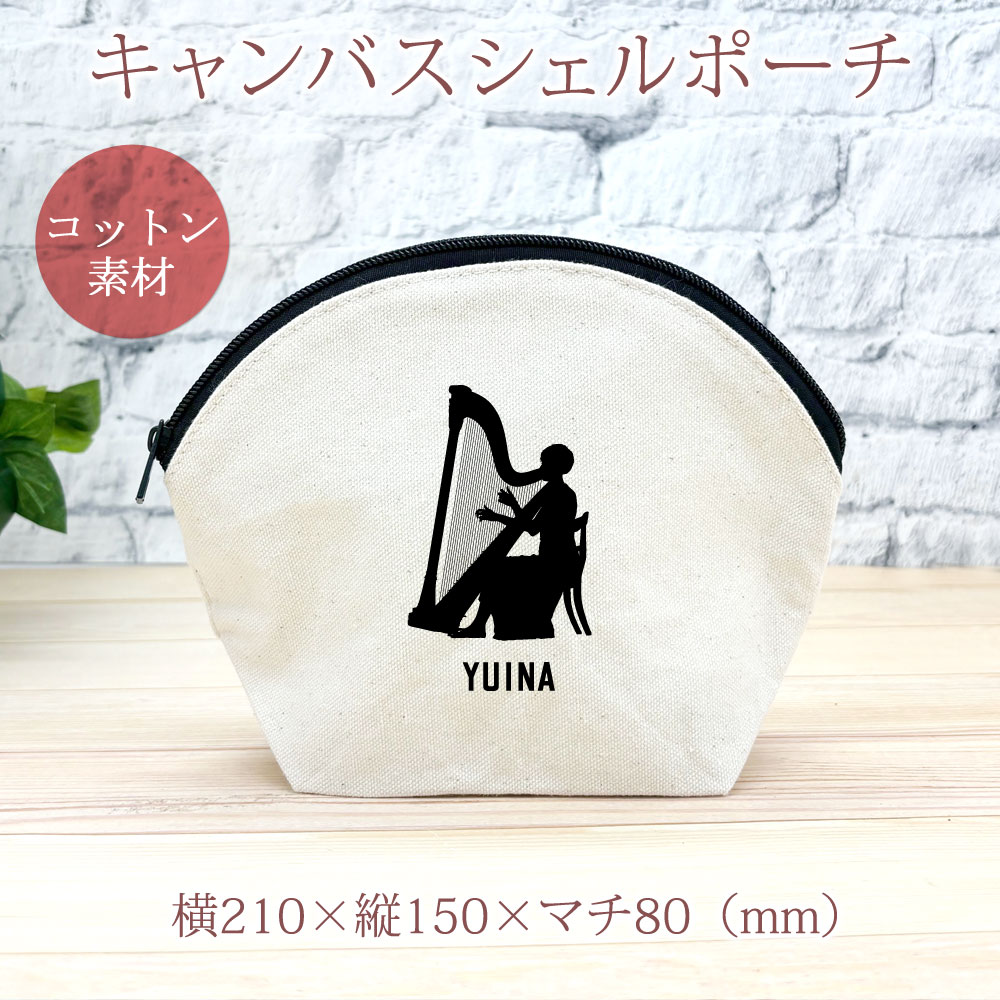 【名入れ無料】 卒団 記念品 プレゼント シェルポーチ バッグインバッグ 吹奏楽 奏楽 オーケストラ 楽団 シルエット 奏者 ハープB 楽器 たて琴 撥弦楽器 音楽 部活 文化部 名入れシルエット…