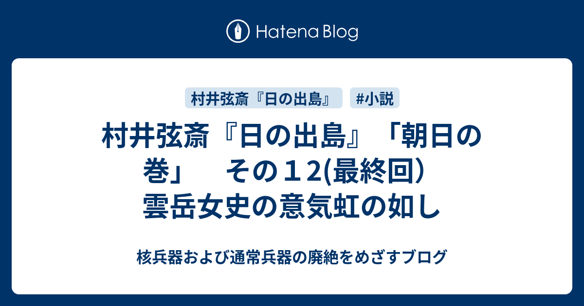 核兵器および通常兵器の廃絶をめざすブログ 村井弦斎『日の出島』「朝日の巻」 その12(最終回)雲岳女史の意気虹の如し