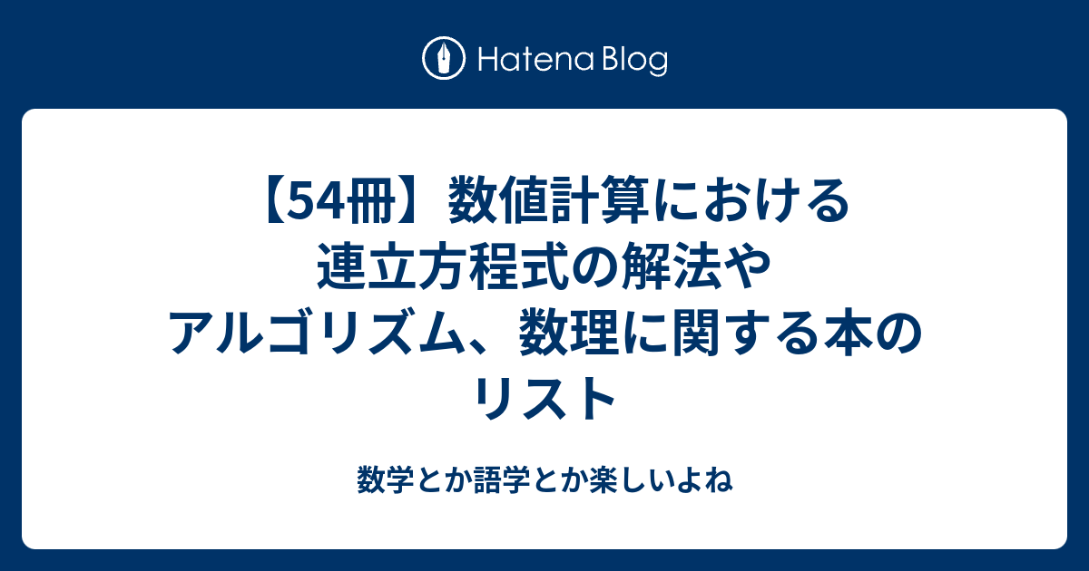 数学とか語学とか楽しいよね 【54冊】数値計算における連立方程式の解法やアルゴリズム、数理に関する本のリスト
