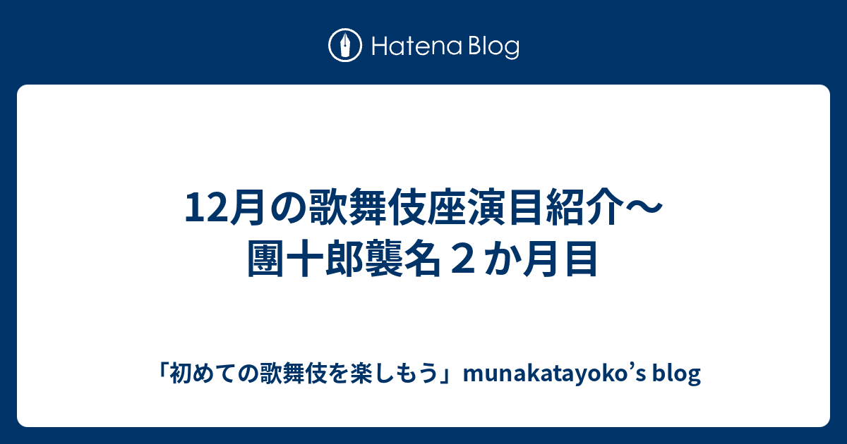 「初めての歌舞伎を楽しもう」munakatayoko’s blog 12月の歌舞伎座演目紹介~團十郎襲名2か月目