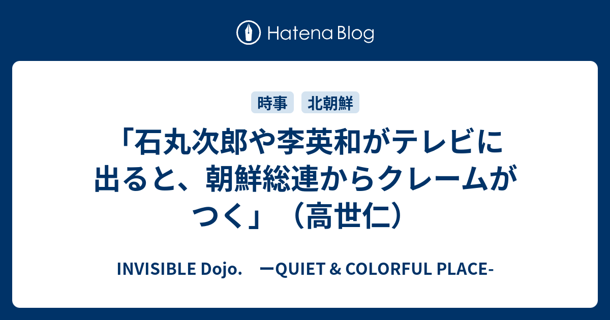 INVISIBLE D. ーQUIET & COLORFUL PLACE- 「石丸次郎や李英和がテレビに出ると、朝鮮総連からクレームがつく」(高世仁)