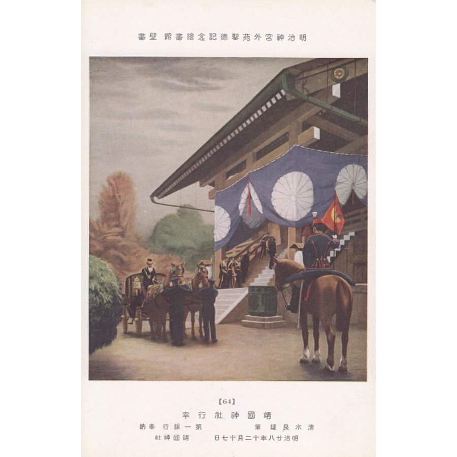 §64 戦前絵葉書 靖国神社行幸 清水良雄筆 明治神宮外苑聖徳記念繪画館壁|ryuden