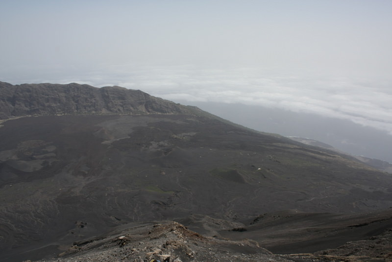 流れ出した溶岩流は、その年代により色が異なり識別できる。山の上からは、溶岩流により、クレーターの壁を押し流し、海まで到達した様子が観察できる。