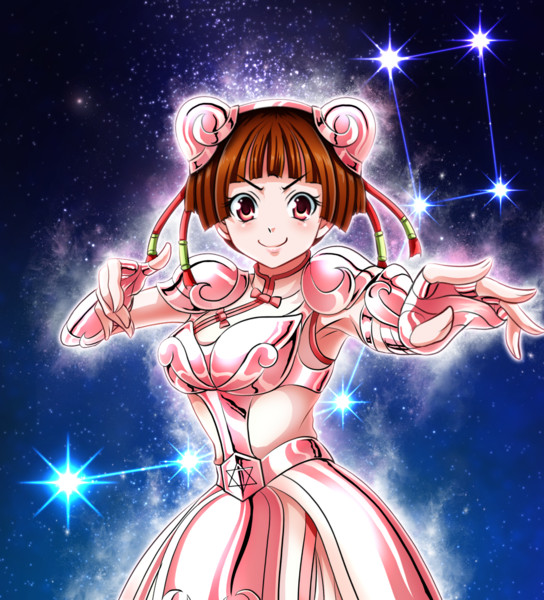 ステラマギカ関連 ○○県○○市、この市内近辺にはある都市伝説が存在した。それは真夜中になるとが現れ通常では解決できないようなトラブルや事件を人知れず解決するという「いわゆる魔法少女と呼ばれる存在」の事である。金髪のツインテールと碧色の瞳。ピンクのつややかなドレスをまとい星屑のような粒子を飛ばしながら夜空を飛翔するその姿からいつしか「ステラマギカ(星の魔法少女)」と呼ばれる様になっていた。 深夜0時を回った頃、人気のない雑木林に一人の女の子がいた。彼女の名前は、星城 美枝子(せいじょう みえこ)。一見すれば、ボブカットのごく普通の中学2年生の女の子である。↑キャライメージhttps://www.pixiv.net/member_illust.php?mode=medium&illust_id=57892860 林に隠れてどこかの民家を眺め「あそこが、私を呼ぶ反応があった所だね・・・じゃあ行くよブローチさん」ひっそりとつぶやく美枝子。そしておもむろに両手を胸に当てて自信なさげながらも笑みを浮かべ力強くセリフを言う。「大いなる力よ、どうか私に人を助ける力を・・・!stella by starlight!(ステラ バイ スターライト!)」https://www.pixiv.net/member_illust.php?mode=medium&illust_id=57846978↑セリフを言ってる時の雰囲気のイメージ・・・すると美枝子の体が光に包まれ、靴や服装などが徐々に分解され粒子のようになって消え服を着ていない状態になった。人気のない場所で変身するのは自分の正体がばれないためであることと、変身中どうしても裸の状態にならざるを得ないためである。そして美枝子のまだ幼い胸元から光があふれ胸元から手を放すと赤いリボンのついた翠色の丸いブローチがその姿を見せた。美枝子の言っていたブローチさんとはこのブローチのことである。https://www.pixiv.net/member_illust.php?mode=medium&illust_id=47857998↑ブローチが胸元から現れるときのイメージ そして胸元から現れたブローチからピンクのラバー素材のような質感のピンクのリボンが溢れかえり美枝子の全身を覆っていく。リボンはただ漠然と体を覆うのではなくレオタードの服装の形状になりながらリボンが体に巻き付くような形式で覆っていく。そして美枝子の手の甲や太ももにもブローチと同じような色合いの翠色のアクセサリーが現れ、そのアクセサリーからもピンクのラバー素材のリボンがあふれてまるで手袋とブーツの姿になるようにして美枝子の体を覆っていく。↑足へのリボンの巻き付き方のイメージ↑体(特に胸部分にかけての)へのリボンの巻き付き方↑腕から手にかけてのリボンの巻き付き方そしてリボンは溶けだして体に密着しピンクのレオタードにより近い姿に変化した。↓こんな感じに変化↑リボンが巻き付き、溶けて服装の形状に変化する工程のイメージ。 服装はリボンの質感と形状がまだ残ったままの状態だが美枝子の体にも変化が起きた。まだ幼い体系の美枝子の体が徐々にステラマギカの体形に成長しているのだ。 まだ髪型はボブカットのままなのだが、胸や足などを含めた全身の体形が大きく変化し始める。ピンクのシワのついたレオタード調の服装もろとも手足は伸び、胸は豊満で魅力のあるたわわな大きさになっていく。「ウウッ・・・!毎回のことだけど、やっぱりキツイ・・・ッッ」 現実ではありえない急激な肉体の成長をする上に体中に密着したレオタードはリボンの形状だった時よりも弾力と質量を持った上に、元の大きさのまま収縮するので体とリボンのギシギシときしむ音とともに胸や手足が大きくなる美枝子の体には服装の締め付けによる痛みが伴う。だがそれと同時に美枝子の心には変身するという嬉しさの感情も芽生えている実感があるのだった。 高校生程度の姿にまで成長した美枝子。その体に密着したリボンはツヤとシワをもったピンクのレオタード・ロンググローブ・ニーハイブーツとなり、ちょうど蝶の蛹のような状態となる。(↓服装はちょうどこのかんじ)https://www.pixiv.net/member_illust.php?mode=medium&illust_id=59332805そして服装についたシワが消え、服装の形状はよりステラマギカの服装のように変化していく。その姿はまるでラバー素材でできた一種のボディスーツの様相をみせる。(↓服デザインはちょうどこんなぐわい) 変身中、目をつむっていた美枝子はおもむろにゆっくりとそのまぶたを開く。その瞬間ボブカットの髪型は膝下まで覆うぐらいの長さにまで延び、表情は凛々しくも優しさと明るさに満ちたまさに「人々に笑顔をもたらす魔法少女」にふさわしいものになった。(髪の伸び方はこういう感じだと予想↓) そしてピンク一色だった服装はまるで蛹が羽化をするようにリボンのついた濃い色と薄い色のピンクのツートンカラーのブーツ(正確にはルーズソックス的なものと靴かもしれない)、金の腕輪のついた四角の模様の入ったピンクのグローブ、そしてこちらも濃い色と薄い色のピンクのツートンカラーなレオタードにその姿を変化させていく。(↓服デザインは大体こんなぐわい)もしくは↓https://www.pixiv.ne