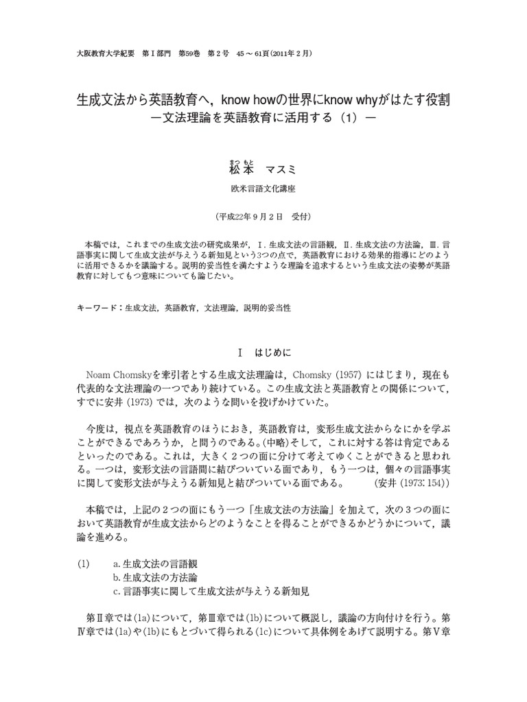 誰がログ 『日本語に主語はいらない』に突っ込む:(1)生成文法と日本語教育