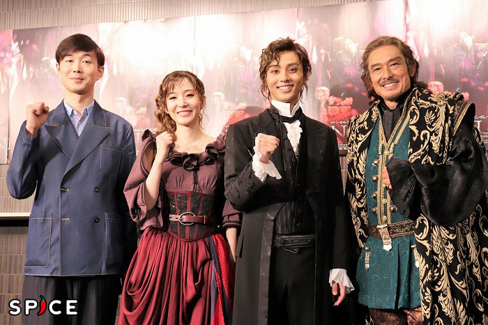 ミュージカル「ドン・ジュアン」初日を迎えた藤ケ谷太輔(右から2人目)。左から演出の生田大和氏、蓮仏美沙子、1人おいて鶴見辰吾(撮影・大井義明)