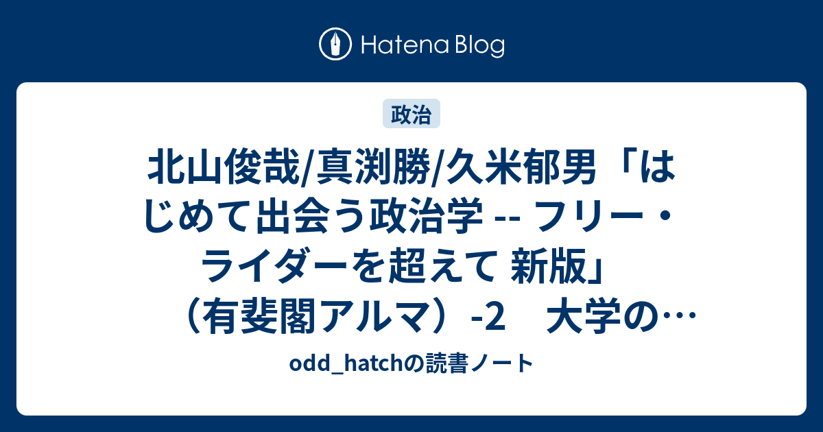 odd_hatchの読書ノート 北山俊哉/真渕勝/久米郁男「はじめて出会う政治学 -- フリー・ライダーを超えて 新版」(有斐閣アルマ)-2