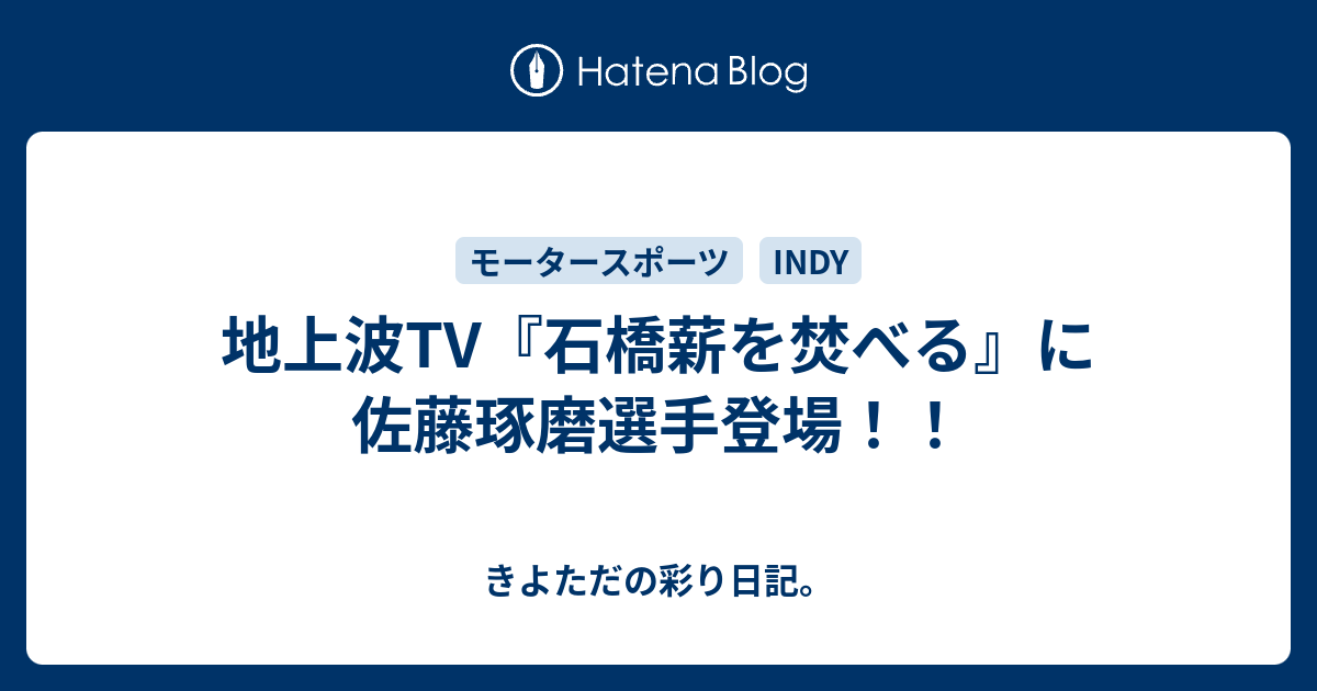 きよただの彩り日記。 地上波TV『石橋薪を焚べる』に佐藤琢磨選手登場!!