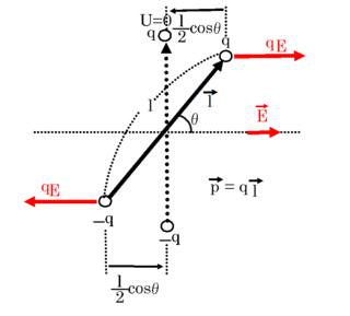 問.一様な電場中に置かれた電気双極子について、並進力と偶力のモーメント(回転力)と位置エネルギーを答えよ。