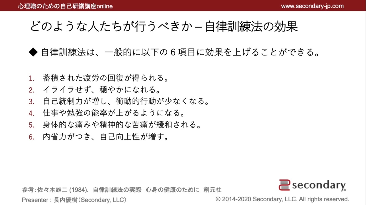 どのような人たちが行うべきか – 自律訓練法の効果(心理職のための自己研鑽講座online – 自律訓練法)