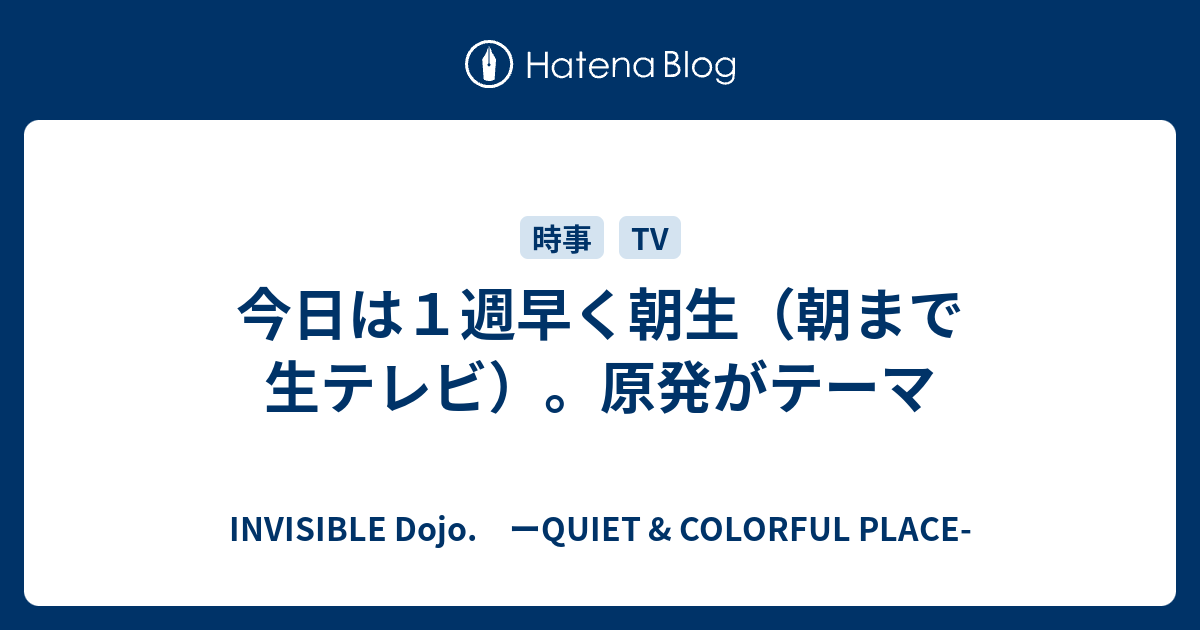 INVISIBLE D. ーQUIET & COLORFUL PLACE- 今日は1週早く朝生(朝まで生テレビ)。原発がテーマ