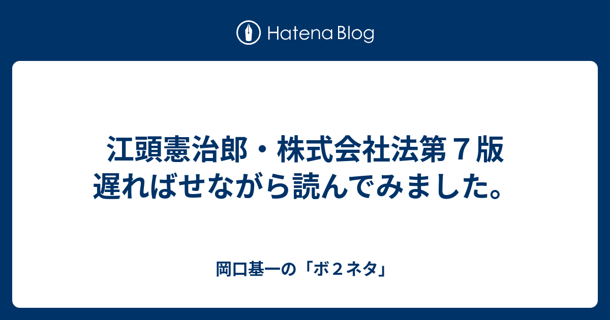 岡口基一の「ボ2ネタ」 江頭憲治郎・株式会社法第7版 遅ればせながら読んでみました。