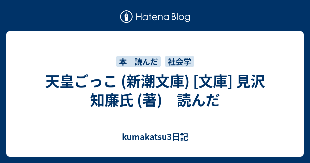 ![kumakatsu3日記 天皇ごっこ (新潮文庫) [文庫] 見沢 知廉氏 (著) 読んだ](https://ogimage.blog.st-hatena.com/10257846132631542709/10257846132638051179/1537714353)