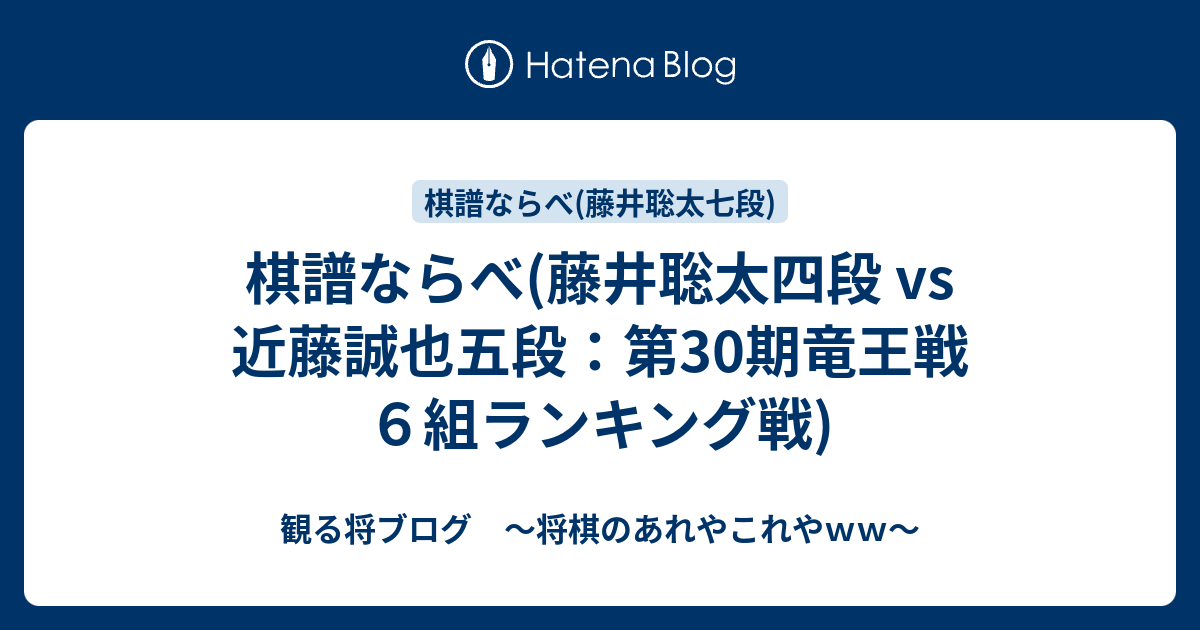 観る将ブログ ~将棋のあれやこれやww~ 棋譜ならべ(藤井聡太四段 vs 近藤誠也五段:第30期竜王戦6組ランキング戦)第30期竜王戦6組ランキング戦 、藤井聡太四段 vs 近藤誠也五段の棋譜です。