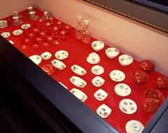 鍋島直正が実際に見た蒸気船の雛形など、展示を前に笑顔を見せる富田紘次さん