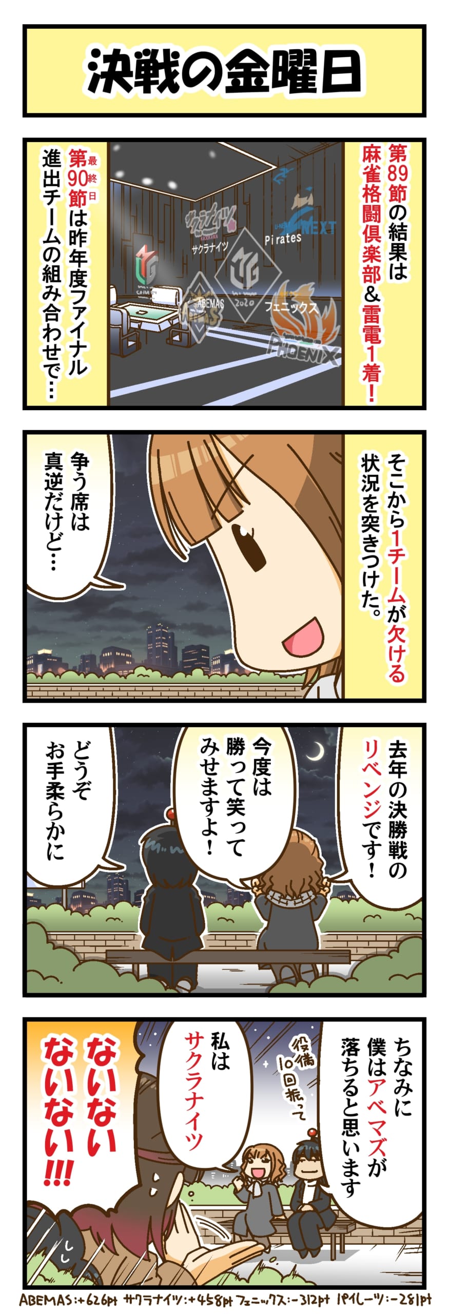 ![1半荘で175100点持ちのトップ!?各団体のリーグ戦の最高得点記録に迫る!新着記事麻雀BULL 正社員・アルバイト募集中!【PR】【Mリーグ】「ABEMA」オリジナル対局企画『Mトーナメント2023』 6月12日(月)15時開幕!初日の対戦カードと各団体推薦選手20名が発表!麻雀で今を詠む 「まあじゃん川柳2023」一般公募を開始!342本場「半分=半分」「時代の変化に対応し、生き残る企業に」マーチャオ×ウェルカムグループトップ対談【PR】【Mリーグ】BSJapanextの新チーム名は「BEAST Japanext」!選考会出場の8名が決定!【Mリーグ2022-23】KADOKAWAサクラナイツインタビュー「ファイナルに行けなったのが初めてで悔しいが、このチームなら戦っていける自信がある。」【Mリーグ2022-23】セガサミーフェニックスインタビュー「四暗刻単騎に放銃した日が私の中ではターニングポイントでした。」341本場「撮っておきたい」楽天で☆4.8超えの高評価!点数表示機能付き家庭用全自卓麻雀卓【AMOS JP-EX】の秘密に迫る![PR]【Mリーグ2022-23】赤坂ドリブンズインタビュー「応援してくれる皆さんの期待に応えられなくて、本当に悔しい思いでいっぱいです。」【Mリーグ2022-23】U-NEXT Piratesインタビュー 「3人にどこでも任せられる。小林頼りのチームじゃなくなった。」【Mリーグ】赤坂ドリブンズ、園田賢、鈴木たろうと契約更改 村上淳、丸山奏子は契約満了となることを発表【学生麻雀連盟】全自動麻雀卓「AMOS JP-EX」を無償で貸出!全国の高校麻雀部や同好会をサポートする「高校麻雀部支援プログラム」募集開始!スタッフを大切にするお店!麻雀チャン太 メンバー経験者大募集!【PR】【5/26 神域リーグ 第1節 結果】白雪レイドが2シーズン目にして初勝利!鈴木勝、桜凛月と今季デビュー選手も勝利を飾る!グラディウスは大きく出遅れ苦しい1日に!【神域リーグ2023】第1節 第3試合速報 桜凛月 咲乃もこ 或世イヌ 朝陽にいな【神域リーグ2023】第1節 第2試合速報 風見くく 渋谷ハル 鈴木勝 桜凛月【神域リーグ2023】第1節 第1試合速報 白雪レイド 歌衣メイカ 天開司 天宮こころ【神域リーグ 2023】STATS週間ランキング月を選択](https://s3-ap-northeast-1.amazonaws.com/img.mj-news.net/wp-content/uploads/2015/08/10100005/rmu3_300x450.png)