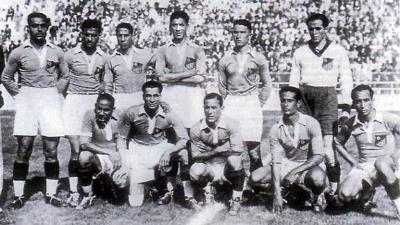The victorious Italian team, back row, left to right, Gianpiero Combi, Luis Monti, Attilio Ferraris, Luigi Allemandi, Enrique Guaita, Giovanni Ferrari. Front row, Angelo Schiavio, Giuseppe Meazza, Eraldo Monzeglio, Luigi Bertolini, and Raimundo Orsi.