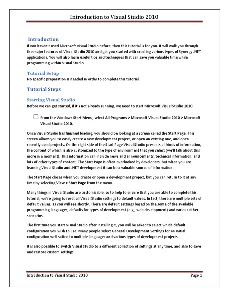 Visual Studio Study MaterialVisual Studio Study Material